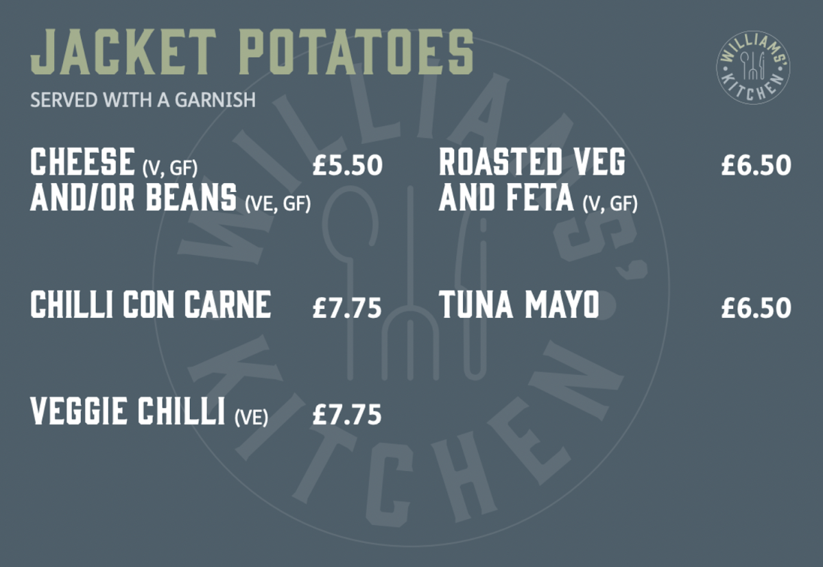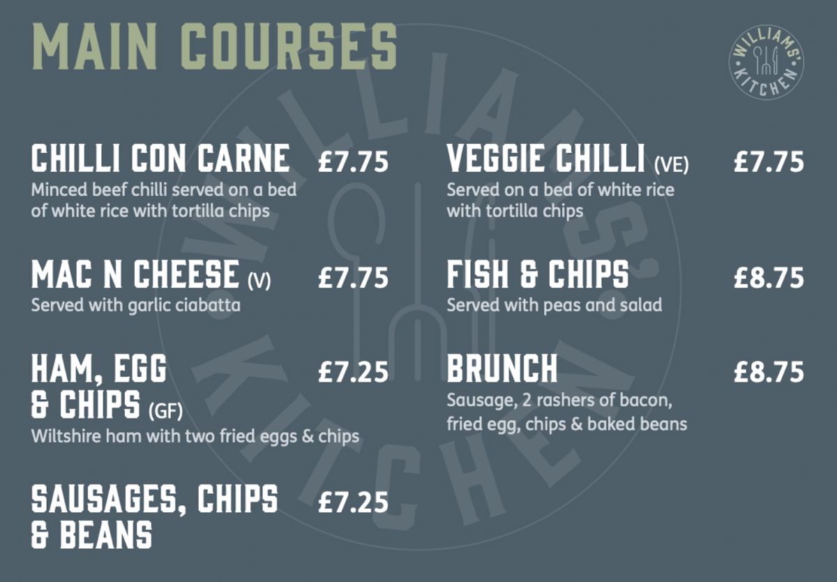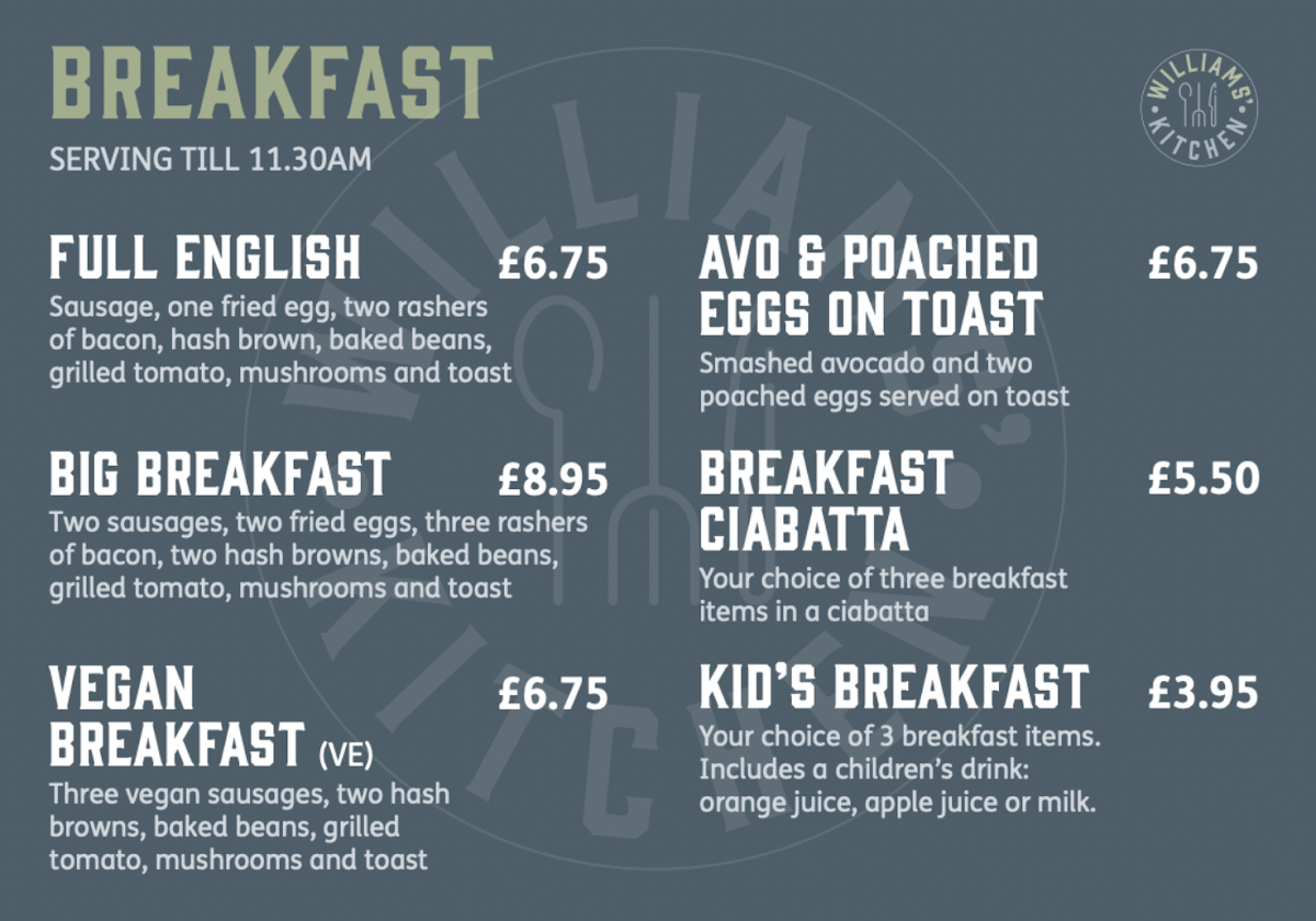 Williams' Kitchen Menu